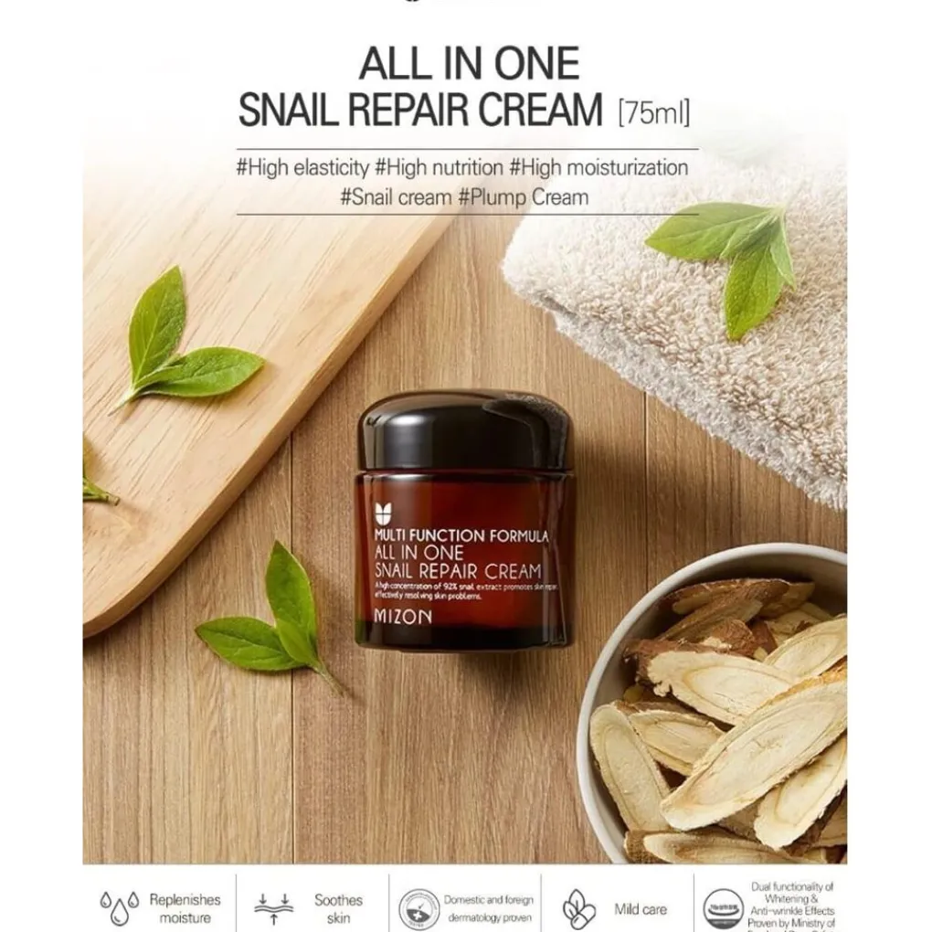 Een multifunctionele gezichtscrème verrijkt met slakkenmucine om de huid te hydrateren en te regenereren. De Heartleaf All In One Snail Repair Cream biedt intensieve hydratatie en kalmering voor de huid dankzij een unieke mix van natuurlijke ingrediënten. De crème bevat een hoog percentage aan Heartleaf-extract, dat bekend staat om zijn kalmerende en verzachtende werking, ideaal voor de gevoelige of geïrriteerde huid. Daarnaast zorgen toegevoegde ceramiden voor een sterkere huidbarrière, waardoor vochtverlies wordt voorkomen en de huid langdurig gehydrateerd blijft.