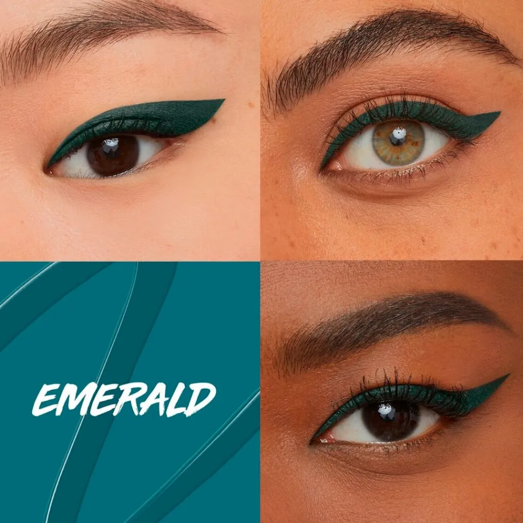 Maybelline New York Hyper Precise 730 Emerald Jungle Eyeliner tekent een strak en precies lijntje of je nu voor dun of dik gaat. De hoog gepigmenteerde formule houdt de hele dag lang.