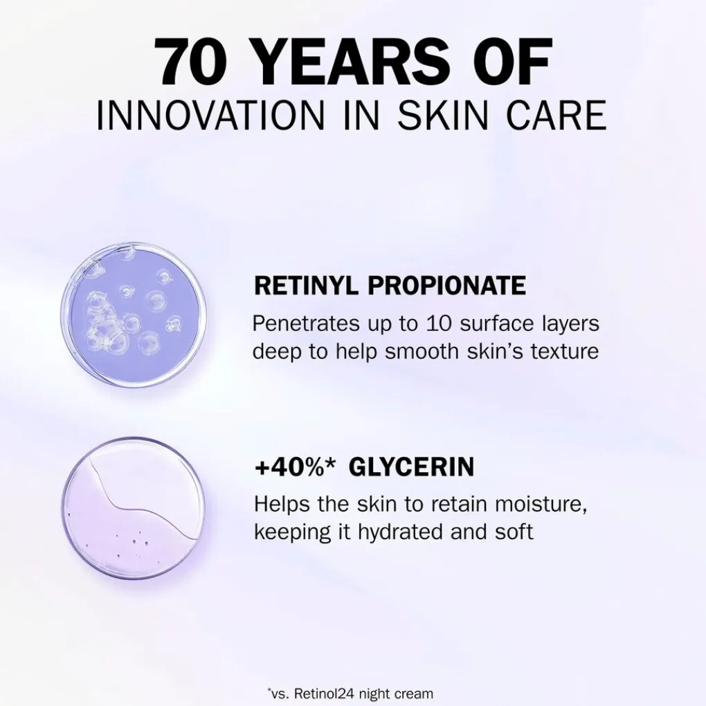 • Hydraterende oogcrème met retinol, met 40% meer hydraterende bestanddelen