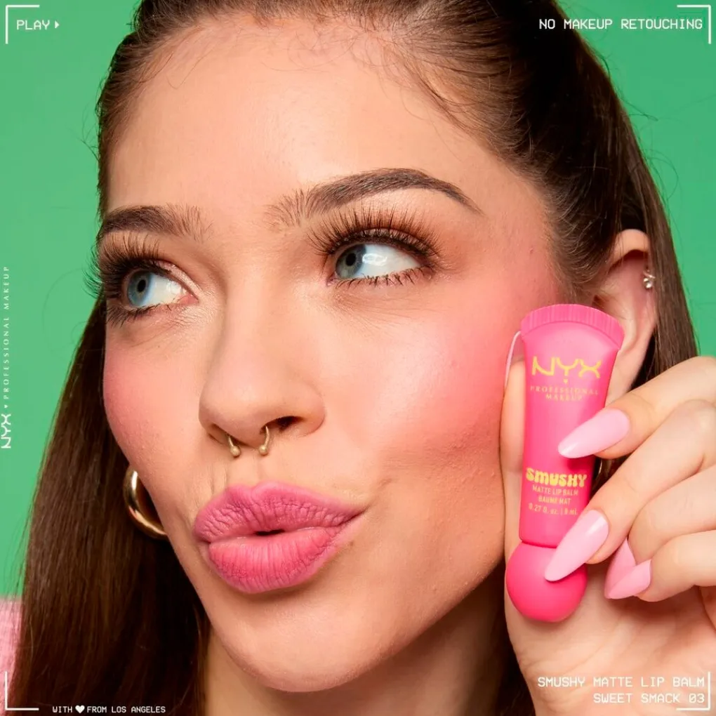 Smack! Smooch! Smushy! Maak kennis met de NYX Professional Makeup Smushy 02 Swipe Sesh Matte Lip Balm! De smushy-zachte textuur biedt langdurig comfort, dat even goed aanvoelt als het eruitziet.