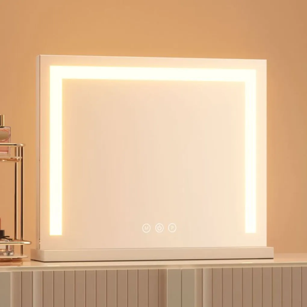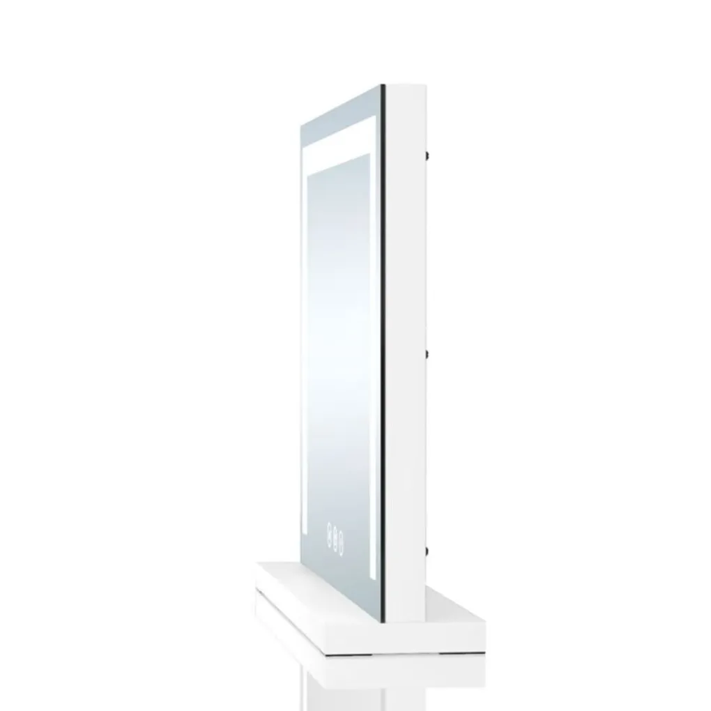 De smart-touch bediening van de spiegel is ontworpen voor intuïtief gebruik en geavanceerde aanpassing. Met een simpele druk op de aan/uit-sensor wordt het licht van de spiegel geactiveerd en kun je meteen genieten van de heldere verlichting door de ingebouwde LED-panelen. Als je de helderheid wilt aanpassen naar een meer gedempte gloed om een ontspannen sfeer te creëren of heldere verlichting nodig hebt tijdens je schoonheidsroutine, kun je eenvoudig de P-knop ingedrukt houden en de lichtintensiteit afstellen op het gewenste niveau.