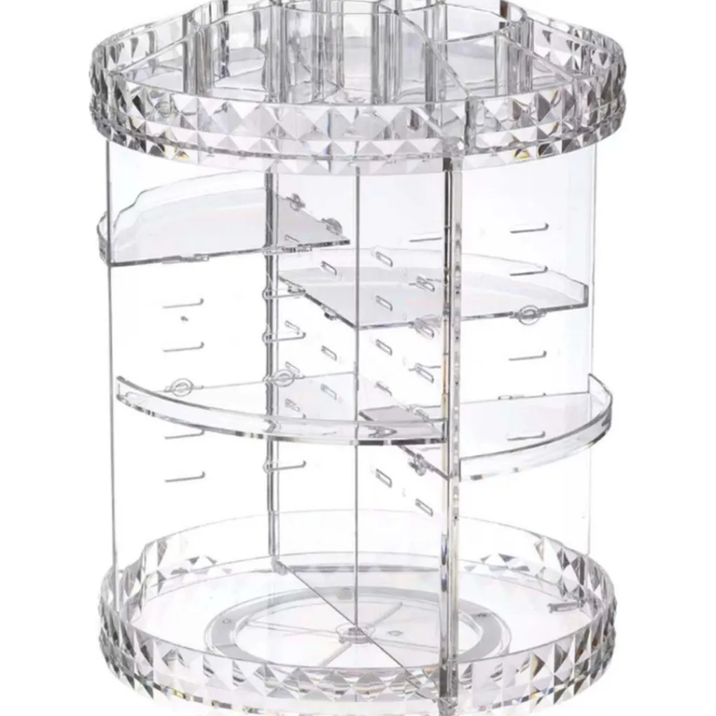 De Confibel Make-up Organizer is een praktische en stijlvolle oplossing voor het organiseren van al je make-up en sieraden. Met zijn roteerbare ontwerp van 360 graden kun je gemakkelijk toegang krijgen tot al je cosmetica en sieraden, terwijl je je ruimte georganiseerd houdt. De afmetingen van de organizer zijn 27x27x32cm, waardoor er voldoende ruimte is voor al je favoriete beautyproducten.