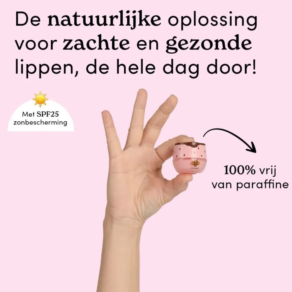 Zeg vaarwel tegen plakkerige formules – Honeybalm is vrij van paraffine en voelt heerlijk licht aan op je lippen.