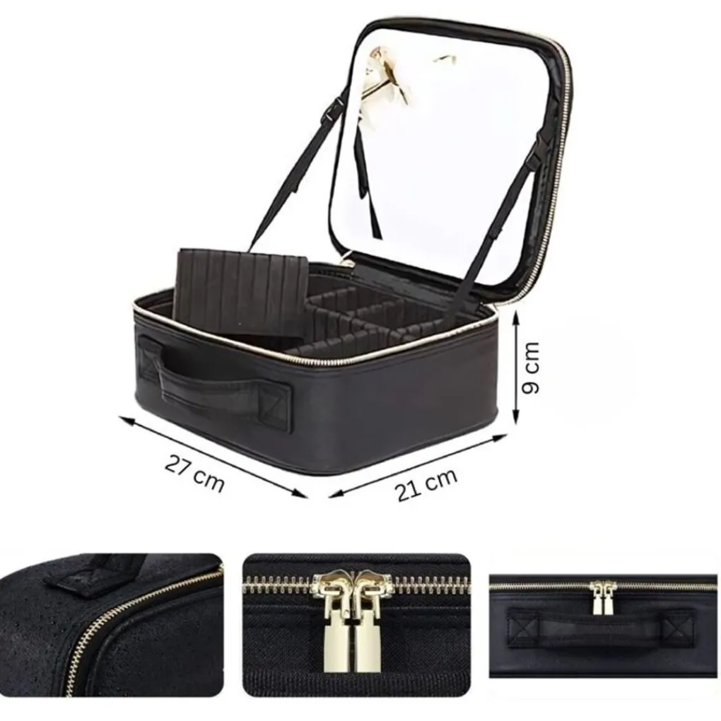 Verbeter je schoonheidsroutine met de elegante make-up organizer met LED-spiegel. Deze stijlvolle en functionele make-uptas is perfect voor zowel thuis als op reis, zodat je je schoonheidsproducten altijd georganiseerd en binnen handbereik hebt. Ontworpen met een oplaadbare LED-spiegel, die altijd en overal perfecte verlichting biedt voor het aanbrengen van make-up. Dankzij het compacte en lichtgewicht ontwerp is hij gemakkelijk mee te nemen en past hij naadloos in je bagage of handtas.