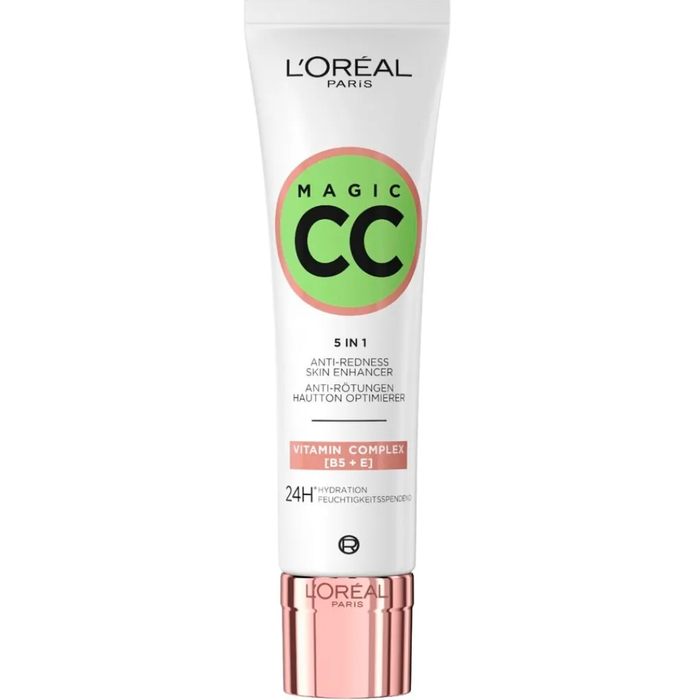 L’Oréal Paris Magic CC 5-In-1 Anti-Roodheidscrème is een verzorgende crème die roodheid in je gezicht corrigeert. De crème bevat vijf effecten in één: het egaliseert, hydrateert, beschermt, maakt gladder en laat stralen.
