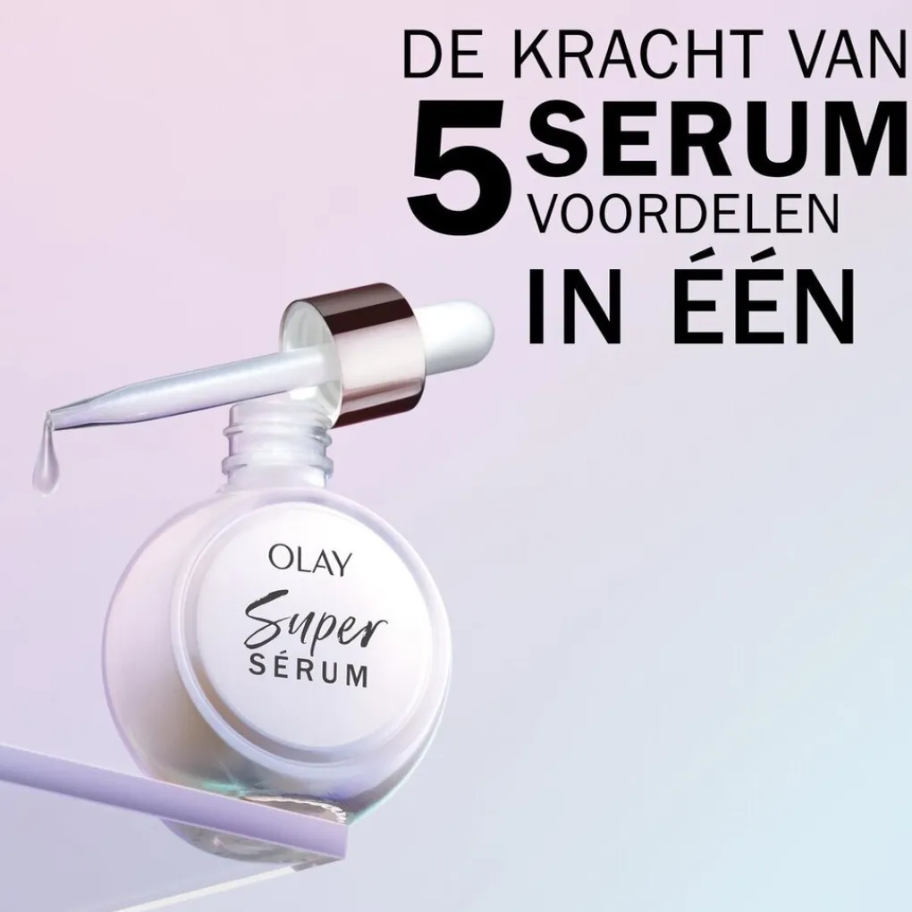 Olay Super Serum is een krachtig gezichtsserum met vijf serumvoordelen in één, voor je beste huid in elke druppel.