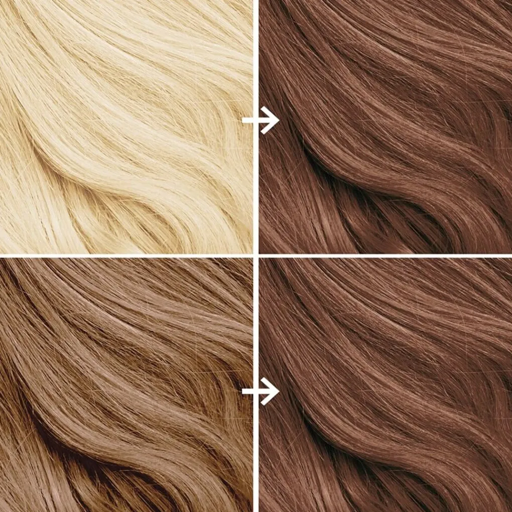 Gebruik op lichtblond haar voor volledige dekking of op donkerblond haar voor een glanzende tint en op balayage of highlights voor een bijkleuring.