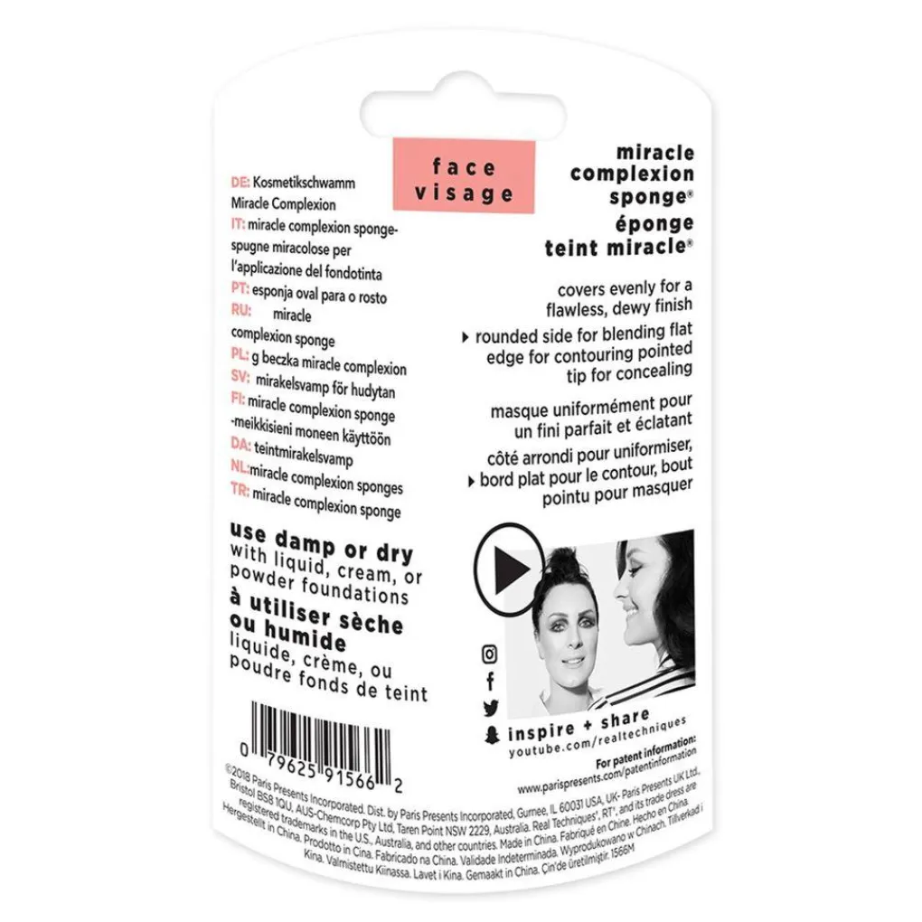 De Real Techniques Miracle Complexion Sponge is speciaal ontworpen om make-up te blenden voor een gladde finish. Gebruik de spons vochtig voor een glow of droog voor een volledige dekking.