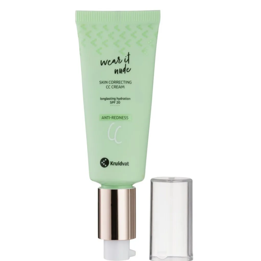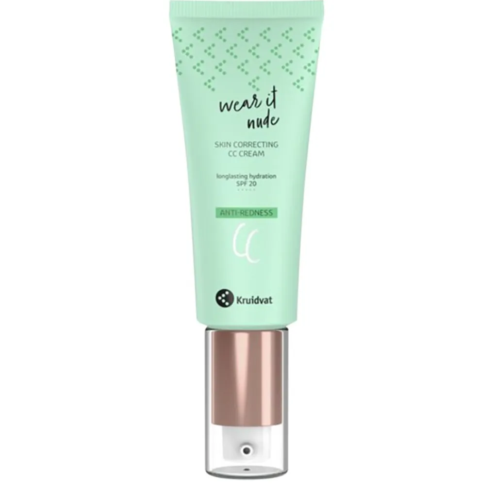 De langdurig hydraterende Kruidvat Wear It Nude Skin Correcting SPF20 Anti-redness CC Cream met kleurtransformerende pigmenten corrigeert zichtbaar roodheid van je huid en camoufleert onvolkomenheden.