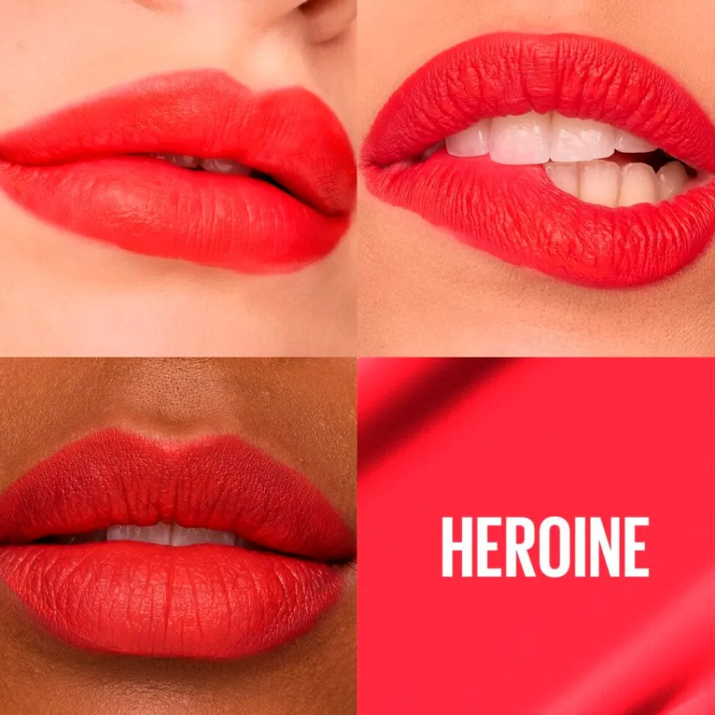 De Maybelline New York SuperStay Matte Ink 25 Heroine Lipstick is een langhoudende rode lippenstift met een trendy, ultramatte finish die tot 16 uur blijft zitten.