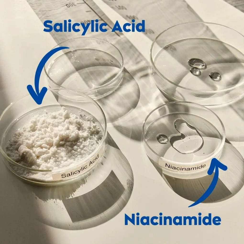 Ingredients: Water, Glycolzuur, Dimethicone, Glycerine, Tapiocazetmeel, Cetearylalcohol, Glycerylstearaat, Natriumhydroxide, Gluconolacton, PEG-40 stearaat, PEG-150 distearaat, Salicylzuur, Niacinamide, Wortelextract van de Glycyrrhiza Inflata, Panthenol, Pantolacton, Xanthaangom, Citroenzuur, Trinatrium EDTA, Fenoxyethanol, Tetramethylacetyloctahydronaftalenen, Parfum
