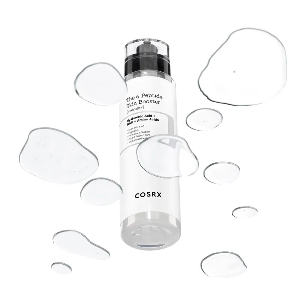 Dit Cosrx The 6 Peptide Skin Booster Serum met zes krachtige peptiden verbetert je algehele huidconditie. Het maakt je huid glad en zacht.