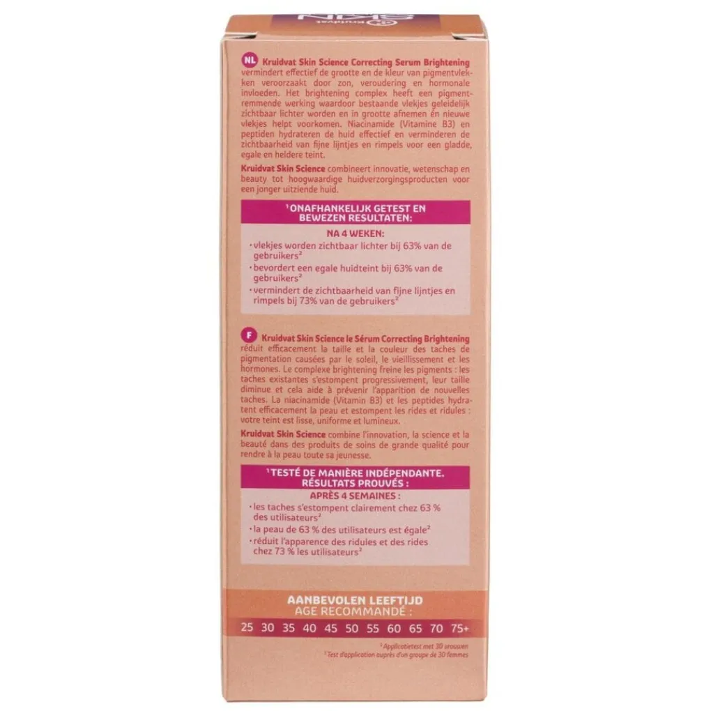 Het Kruidvat Skin Science Brightening Correcting Serum is onafhankelijk getest en biedt bewezen resultaten. Na vier weken:
