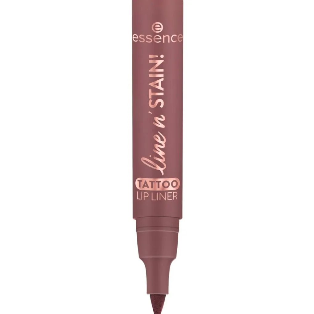 Creëer nauwkeurige contouren met de Essence Line ’n Stain! 3 Make a Mauve Tattoo Lipliner. De vloeibare lipliner is verkrijgbaar in een donkere mauvetint die je met slechts één veeg aanbrengt.