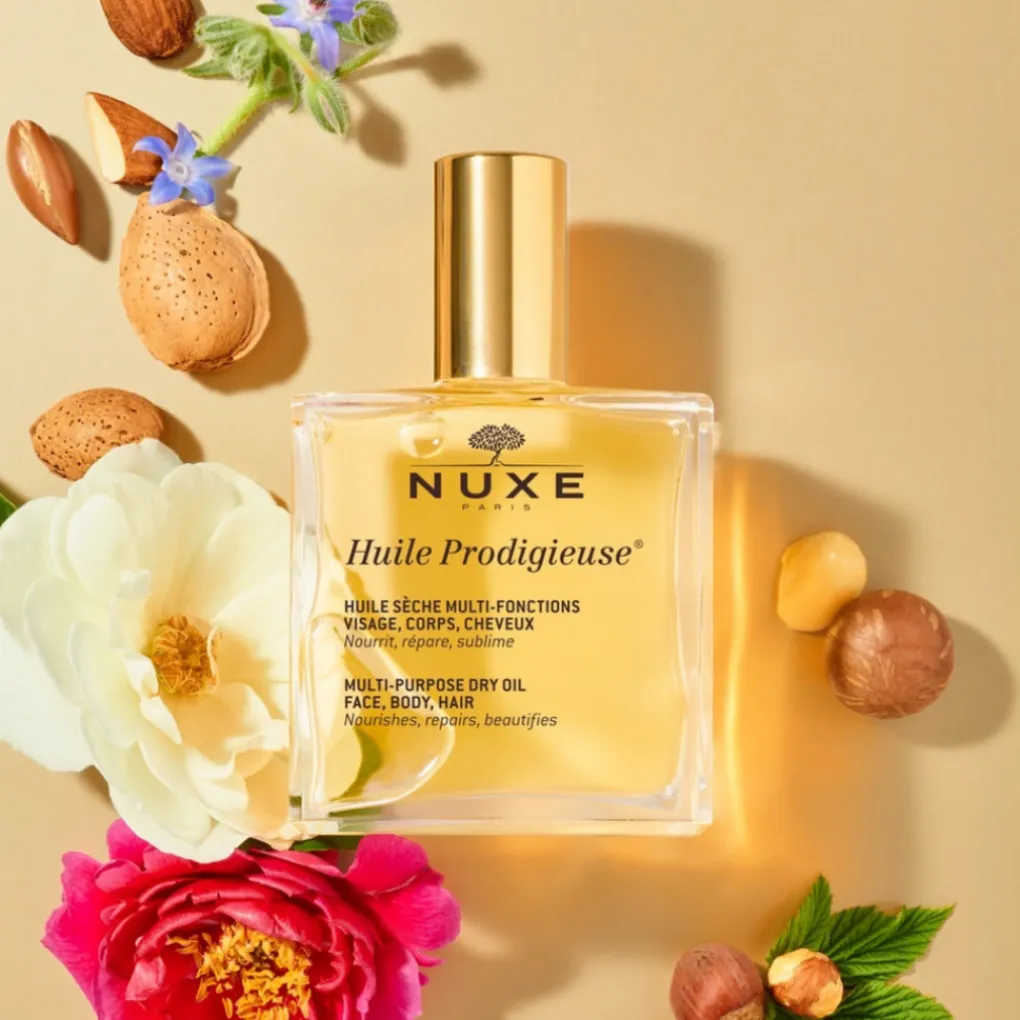 Deze veelzijdige olie is ideaal voor de dagelijkse verzorging van het gezicht, lichaam en haar. Het voedt de huid diep, verbetert de elasticiteit en geeft het haar een prachtige glans zonder het te verzwaren. De geur is subtiel en rustgevend, waardoor het een aangename ervaring is voor zelfzorgmomenten. Nuxe Huile Prodigieuse is een perfect product voor wie op zoek is naar een alles-in-één verzorging die de huid, het gezicht en het haar een gezonde uitstraling geeft.