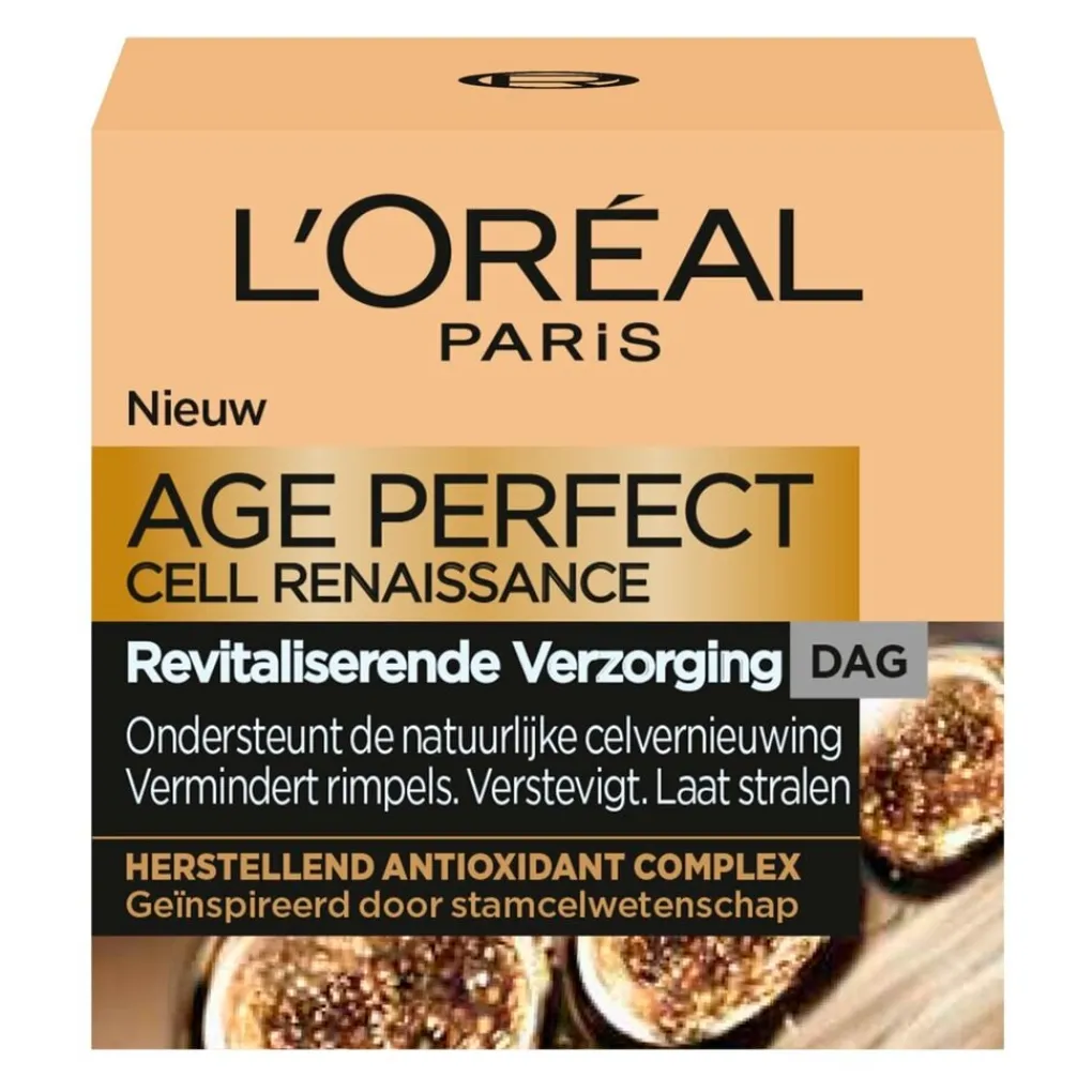 L’Oréal Paris Age Perfect Cell Renaissance Dagcrème bevat een herstellend antioxidantcomplex met neohesperidine en vitamine E die zorgt voor een zachtere, stevigere en stralende huid.
