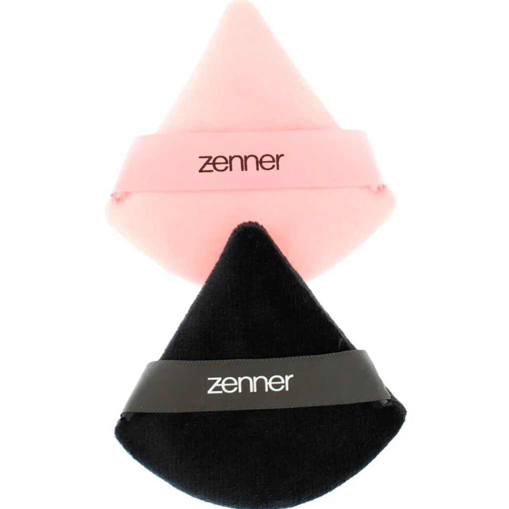 Breng poeder makkelijk en egaal aan met de Zenner Poedersponsjes. Verdeel de poeder eerst algemeen over je gezicht en gebruik daarna de puntige hoek om makkelijke kleinere gebieden nauwkeurig af te poederen, zoals rondom je neus. Dankzij het lusje kun je de spons goed vasthouden en ga je nog nauwkeuriger te werk. Beide sponzen zijn dubbelzijdig te gebruiken.