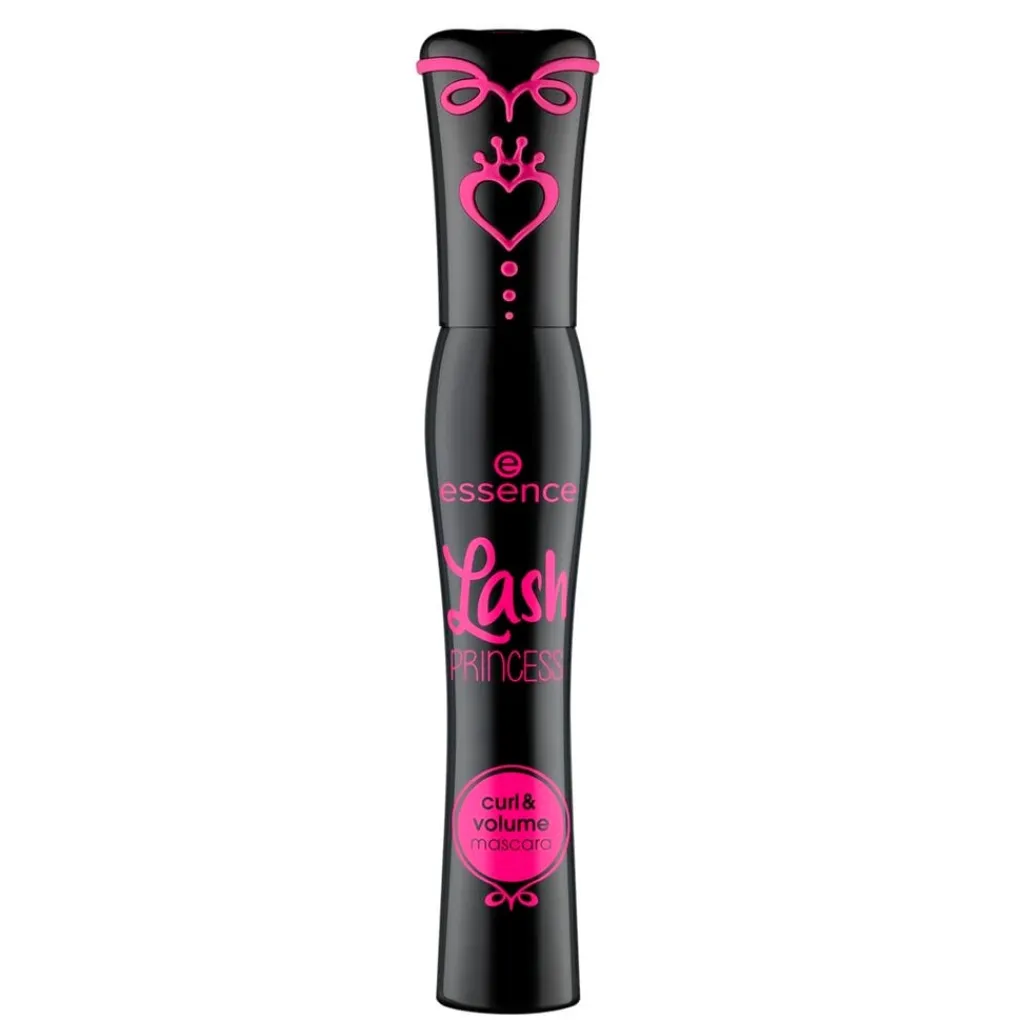 De Essence Lash Princess Curl & Volume Black Mascara is een echte eyecatcher met een uniek ontwerp en een opvallende roze kleur op de verpakking.