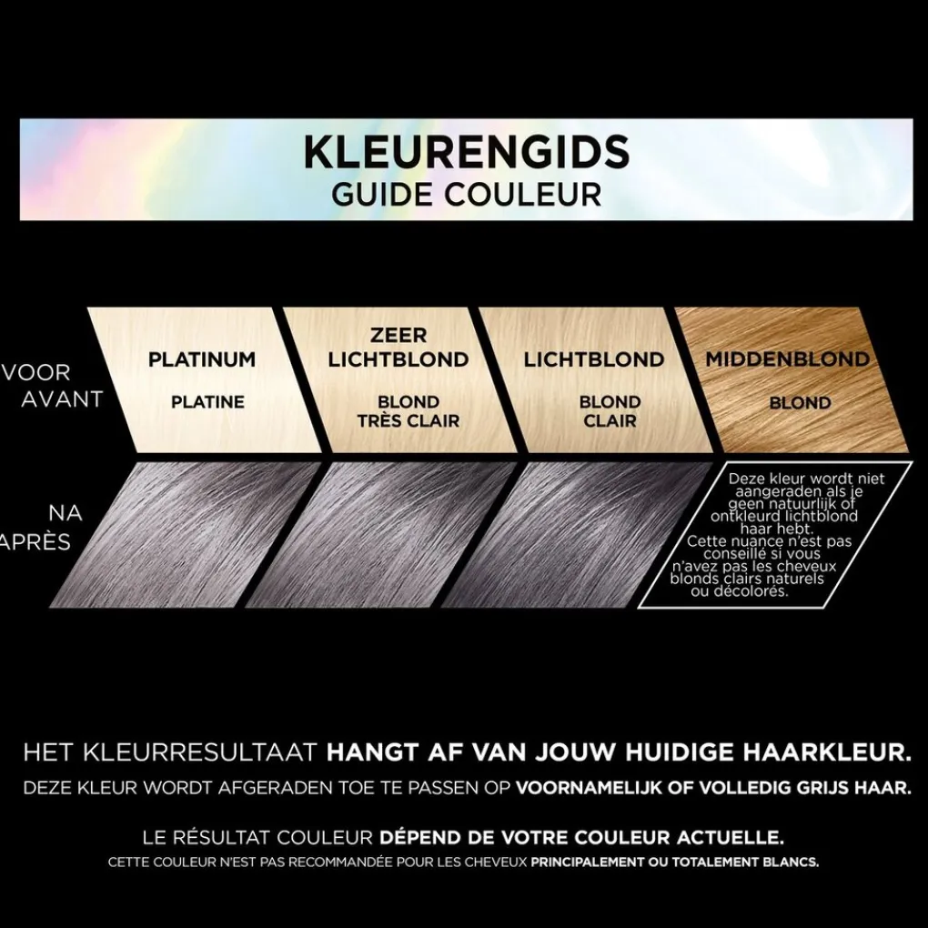 Let op: Doe een allergie waarschuwingstest 48 uur vóór iedere haarkleurbehandeling. Ook indien je al eerder je haar gekleurd hebt. In de gebruiksaanwijzing in de verpakking staat beschreven hoe je dit doet. Volg tijdens het kleuren altijd de gebruiksaanwijzing nauwkeurig op.