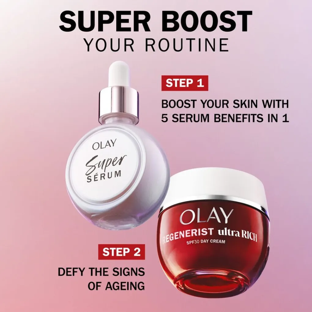 De Ultra Rich dagcrème van Olay Regenerist is dermatologisch getest en goedgekeurd door de Skin Health Alliance. Het is perfect voor mensen die op zoek zijn naar een intense textuur en een jongere huid. Geef je huidverjongingsroutine een boost en ga voor een jongere teint met Olay Regenerist Ultra Rich. Ontdek het geheim van een gevoede en jonger ogende huid