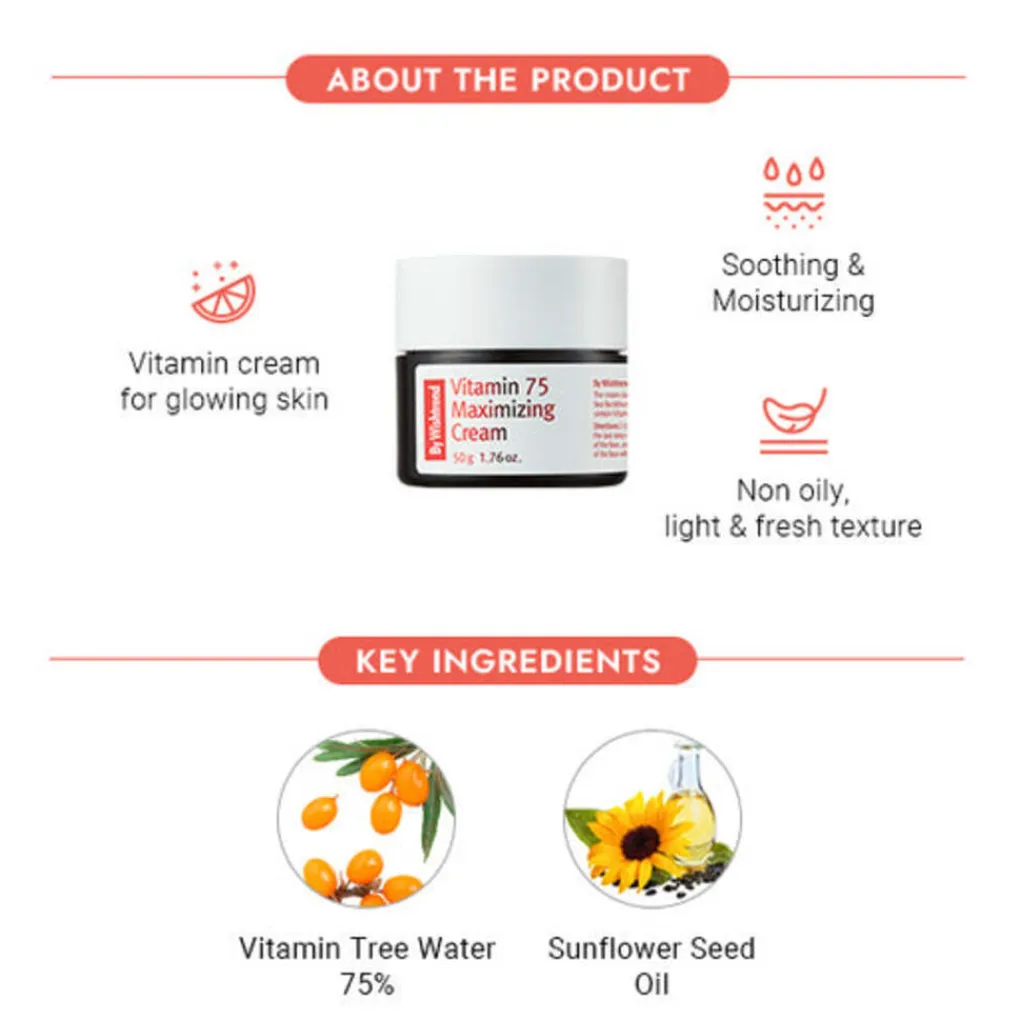 Deze vitaminecrème bevat 75% Vitamin Tree Water in plaats van gewoon water. Vitamin Tree Water helpt de huid te verhelderen, terwijl vitamine E zorgt voor verzachting en hydratatie. De Heartleaf Vitamin 75 Maximizing Cream 50 g biedt intensieve hydratatie en kalmering voor de huid dankzij een unieke mix van natuurlijke ingrediënten. De crème bevat een hoog percentage aan Heartleaf-extract, dat bekend staat om zijn kalmerende en verzachtende werking, ideaal voor de gevoelige of geïrriteerde huid. Daarnaast zorgen toegevoegde ceramiden voor een sterkere huidbarrière, waardoor vochtverlies wordt voorkomen en de huid langdurig gehydrateerd blijft. Deze crème is perfect als onderdeel van je dagelijkse huidverzorgingsroutine om de huid te herstellen en te beschermen tegen externe invloeden. Bij regelmatig gebruik zal de huid zachter, soepeler en beter beschermd zijn tegen uitdroging en irritaties.