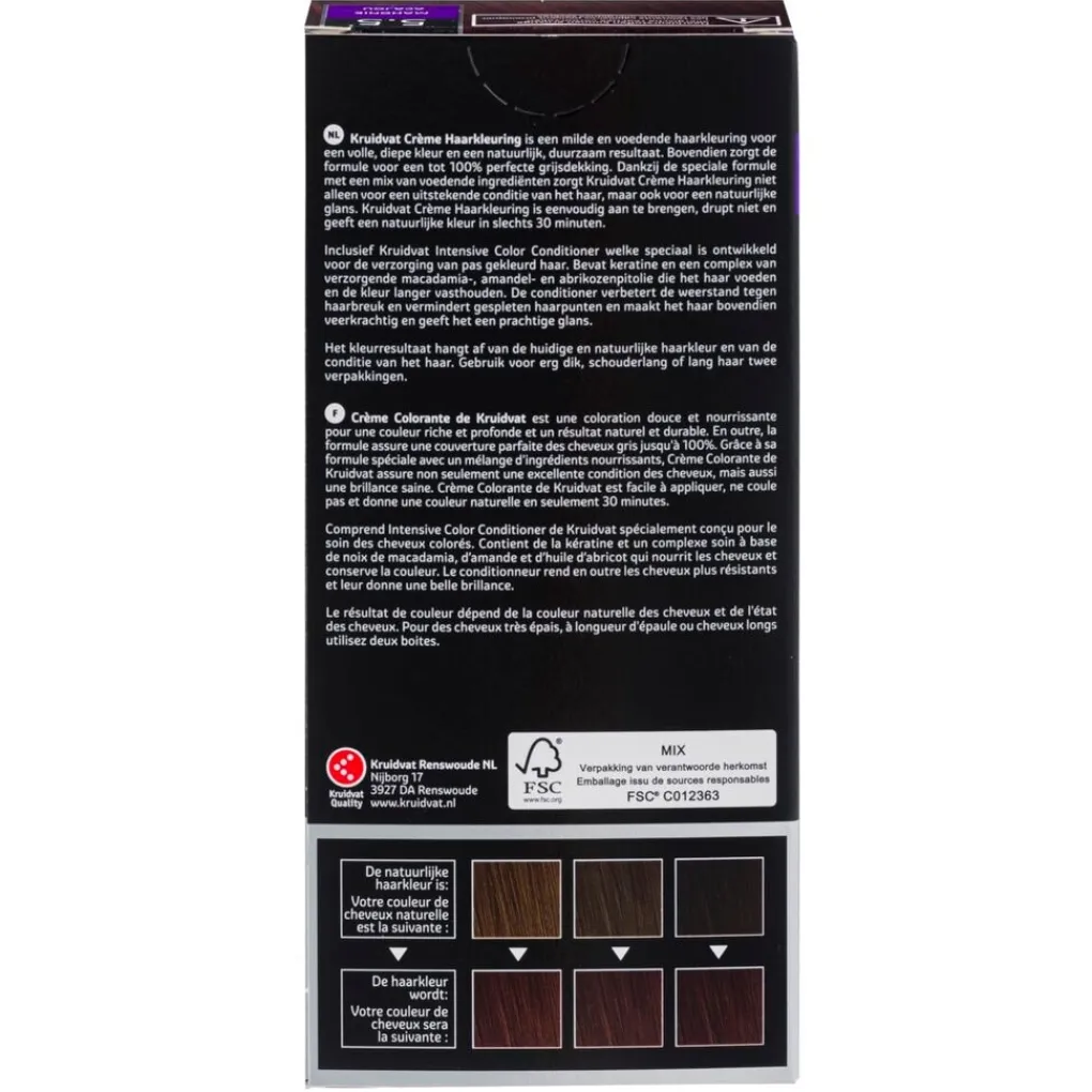 Het kleurresultaat hangt af van de huidige en natuurlijke haarkleur en van de conditie van je haar. Kruidvat Crème Haarkleuring is ontwikkeld en getest in samenwerking met kappers.