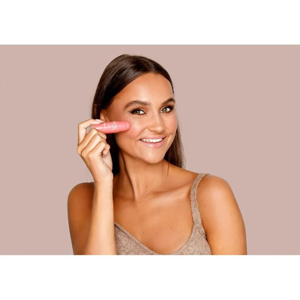 De formule die is verrijkt met verzorgende kokosolie, jojoba-olie en vitamine E zorgt voor lippen die zacht en weelderig lijken alsof ze net gekust zijn en wangen die een frisse blozende look hebben.
