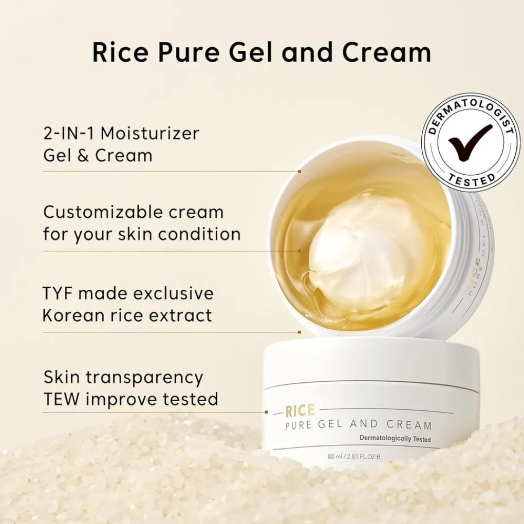 THANK YOU FARMER Rice Pure Gel and Cream is een lichte, voedende gel-cream die snel wordt opgenomen en de huid langdurig hydrateert zonder een zwaar gevoel achter te laten. Verrijkt met rijstextract en andere natuurlijke ingrediënten, helpt het de huid te verzachten, te verhelderen en de natuurlijke glans te verbeteren. De formule is ideaal voor de normale tot gecombineerde huid en zorgt voor een frisse, stralende teint met een comfortabele finish.