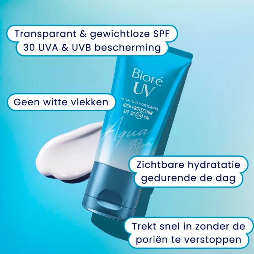 De voordelen van de Bioré Aqua Rich Uv SPF 30 Weightless Moisturiser: