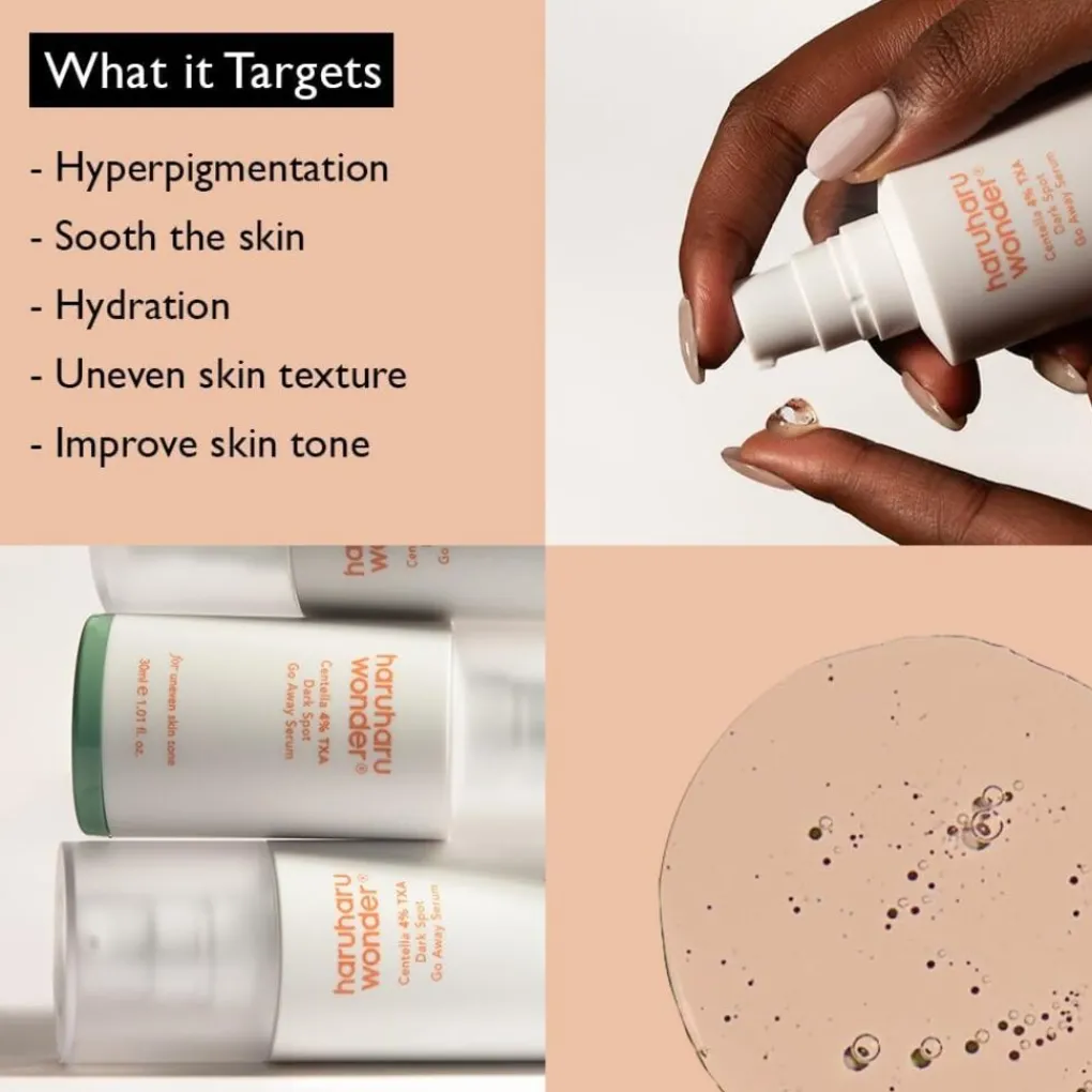 Het Haruharu Wonder Centella 4% TXA Dark Spot Go Away Serum is een krachtig vegan serum dat speciaal is ontwikkeld om donkere vlekken te verminderen en de huidtint te egaliseren. Met 4% tranexaminezuur (TXA) en Centella Asiatica-extract helpt het hyperpigmentatie te bestrijden en de huid te verhelderen. Dit serum verfijnt de huidtextuur en zorgt voor een stralendere, gezondere uitstraling. Geschikt voor alle huidtypes, vooral voor de huid die last heeft van pigmentvlekken en ongelijkmatige teint. Dankzij de lichte formule trekt het snel in en is het ideaal voor dagelijks gebruik.