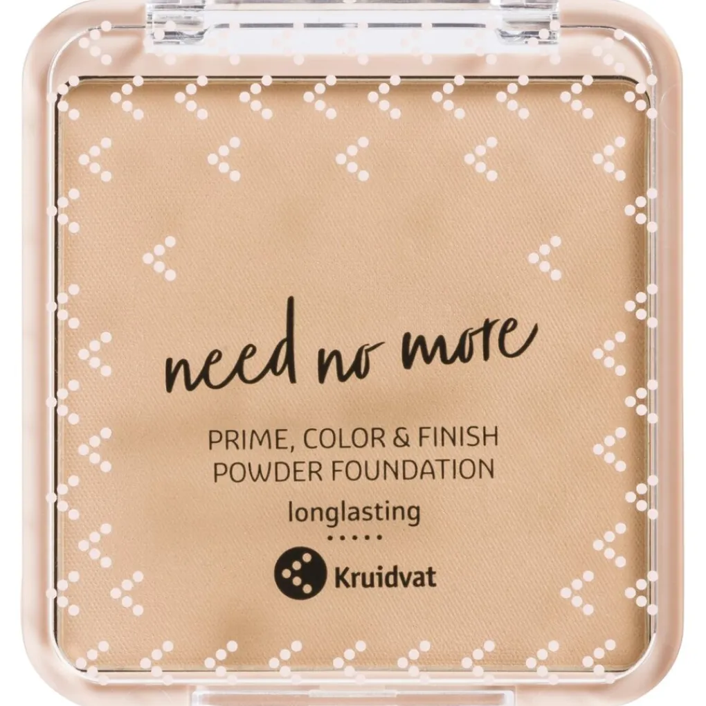 De veelzijdige 3-in-1 textuur van deze Kruidvat Need No More 028 Medium Biscuit Prime, Color & Finish Powder Foundation geeft een perfecte dekking. De poederfoundation verzorgt je huid met voedende druivenpitolie.