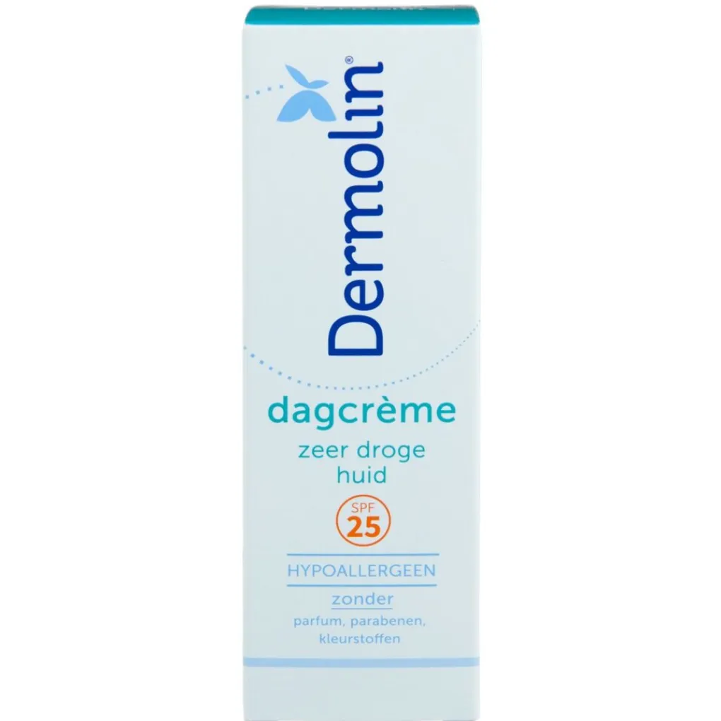 De dagcrème gaat huidveroudering tegen doordat het SPF25 bevat. Dit biedt bescherming tegen uv A- en uv B-stralingen. De toevoeging van vitamine E versterkt de natuurlijke barrière van je huid. Bij de ontwikkeling van Dermolin Zeer Droge Huid Dagcrème is extra aandacht besteed voor het gebruik bij huidaandoeningen, zoals allergische huidreacties, huidirritatie, eczeem en psoriasis.