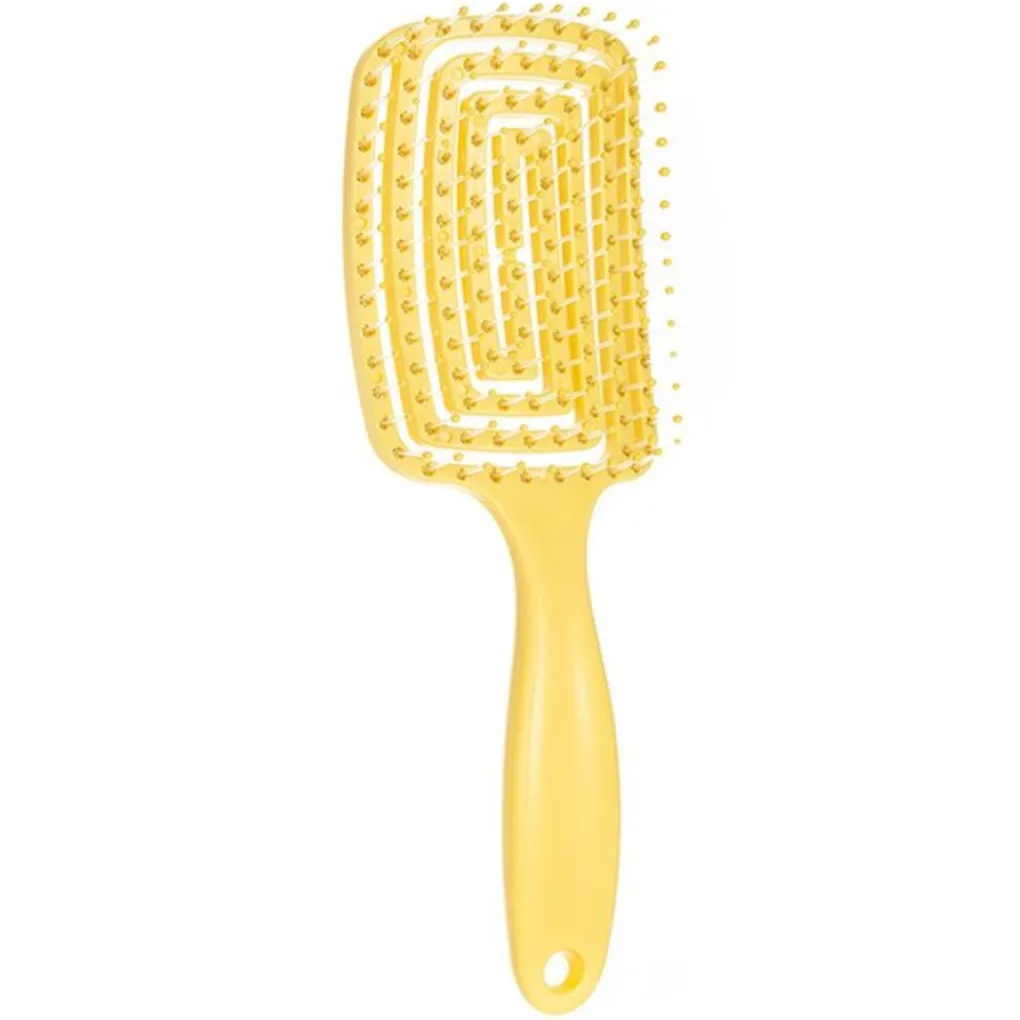 Ontdek het geheim achter moeiteloos stylen en glanzend haar met de ontklittende Hollow-haarborstel in zwart. Deze innovatieve borstel is de ultieme oplossing voor dagelijkse haarproblemen, van vervelende klitten tot tijdrovend stylen. Het unieke holle ontwerp zorgt voor een optimale luchtstroom voor sneller en efficiënter föhnen, terwijl het warmtebeschadiging minimaliseert en de natuurlijke glans van het haar behoudt.Het strakke ontwerp combineert functionaliteit met elegantie, waardoor het een onmisbaar accessoire is in elke schoonheidsroutine. De borstel is voorzien van zachte, flexibele borstelharen die de haarlokken gemakkelijk scheiden zonder te trekken of het haar te breken, wat zorgt voor een soepele en pijnloze ontklittende ervaring. Of je nu dik, krullend, dun of steil haar hebt, deze borstel past zich probleemloos aan alle haartypes en texturen aan.Het ergonomisch ontworpen handvat zorgt voor een comfortabele en veilige grip, waardoor je elke beweging onder controle hebt terwijl je je haar in model brengt en gladstrijkt. Door het lichte gewicht is hij ideaal voor gebruik thuis en onderweg, zodat je altijd en overal de perfecte look kunt creëren.