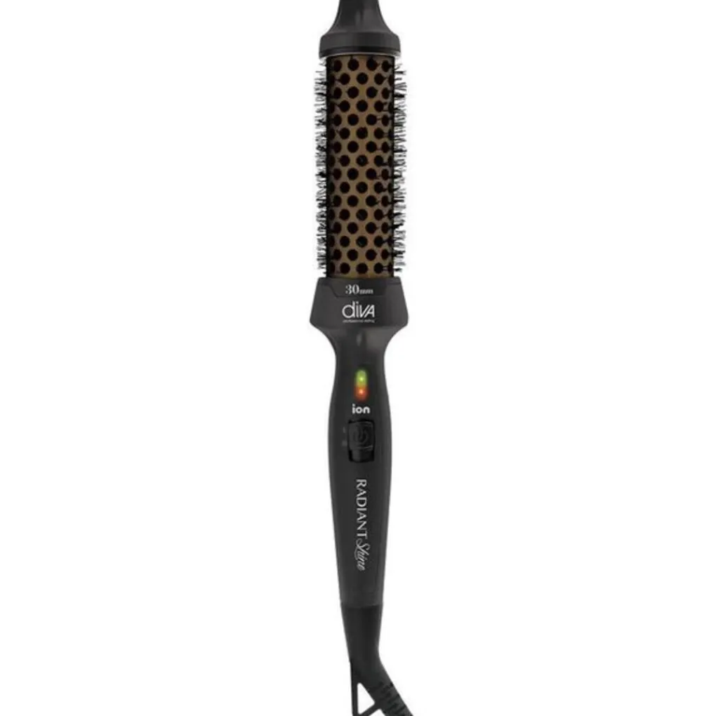 De Diva Pro Keramische Warmteborstel 30mm is de ideale tool om het haar moeiteloos volume, krullen en prachtige golven te geven. Deze warmteborstel, voorzien van een keramische coating met Argan Olie, Keratine en Macadamia olie, zorgt niet alleen voor een gelijkmatige warmteverdeling maar ook voor een gladde en glanzende finish. Dankzij de geavanceerde MAK Technologie wordt het haar glanzend en pluisvrij, zodat elke stylingbeurt resulteert in een gezonde, verzorgde uitstraling.