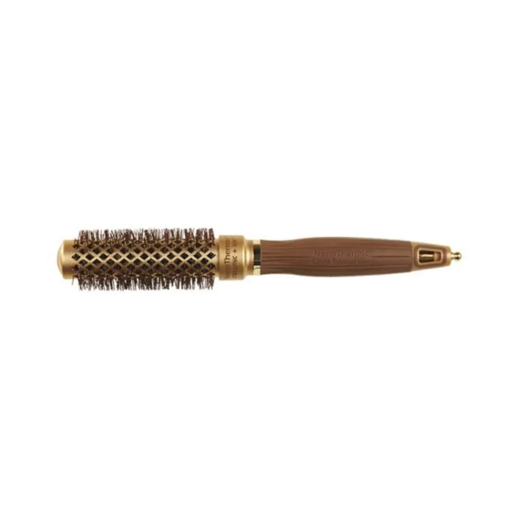 De Olivia Garden Expert Blowout Shine Wavy Goud/Bruin 25mm is een lichtgewicht borstel met een keramisch gecoat cilinder. De Nanothermische Technologie biedt een antibacteriële bescherming. Deze haarborstel verwarmt snel en houdt de warmte langer vast. De grote ventilatieopeningen zorgen voor een betere luchtstroom waardoor de droogtijd vermindert. Deze veelzijdige borstel is ultra zacht voor het haar en de hoofdhuid.