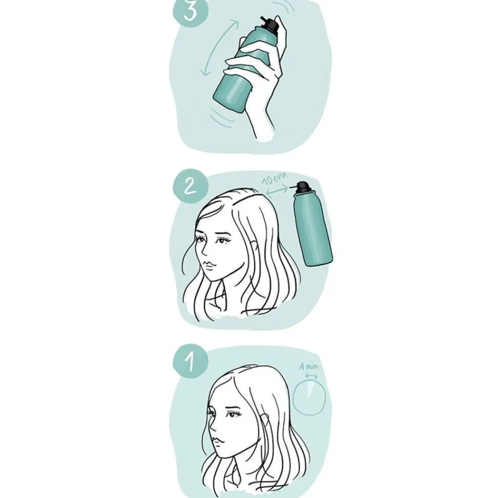 2. Spray ongeveer tien centimeter vanaf je hoofdhuid.