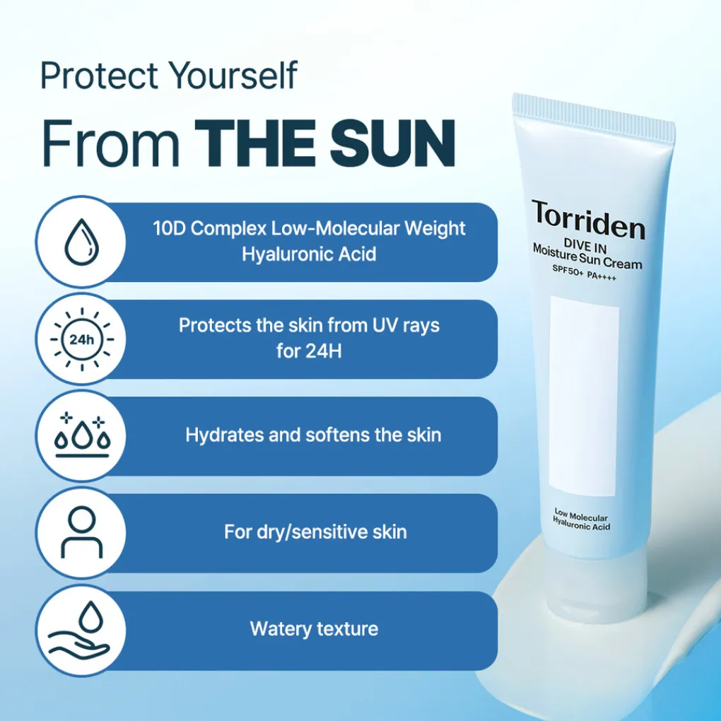 Een lichte en hydraterende zonnecrème die de huid beschermt tegen schadelijke UV-stralen, verrijkt met 10D laag moleculair hyaluronzuur voor langdurige hydratatie. De waterige, niet-vette formule trekt snel in en laat de huid fris en gehydrateerd aanvoelen zonder een witte waas achter te laten. Deze zonnecrème biedt brede bescherming tegen zowel UVA- als UVB-stralen, terwijl het de huid voedt en kalmeert, ideaal voor dagelijks gebruik, zelfs voor de gevoelige huid.