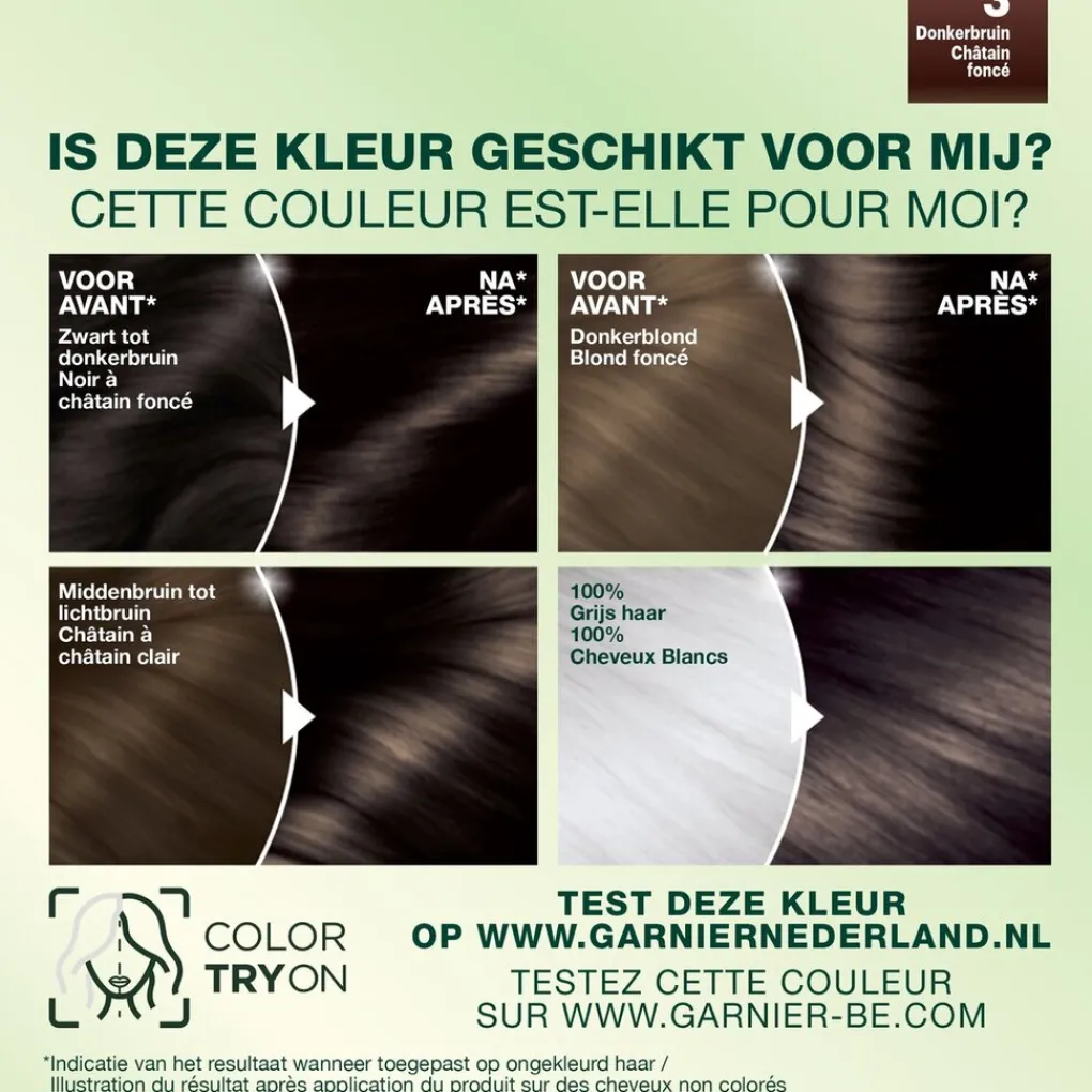 Bij een reactie of bij twijfel, raadpleeg een arts voordat u een kleurproduct gebruikt.