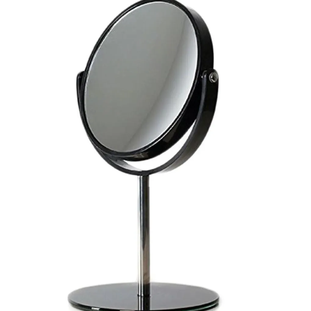 Unieke zwarte make-up spiegel van UNIQ®. De spiegel is gemaakt van verchroomd staal met aan één kant een goed vergrotende spiegel. Handig als je aan tafel moet zitten bij het aanbrengen van make-up en het kammen van je haar.