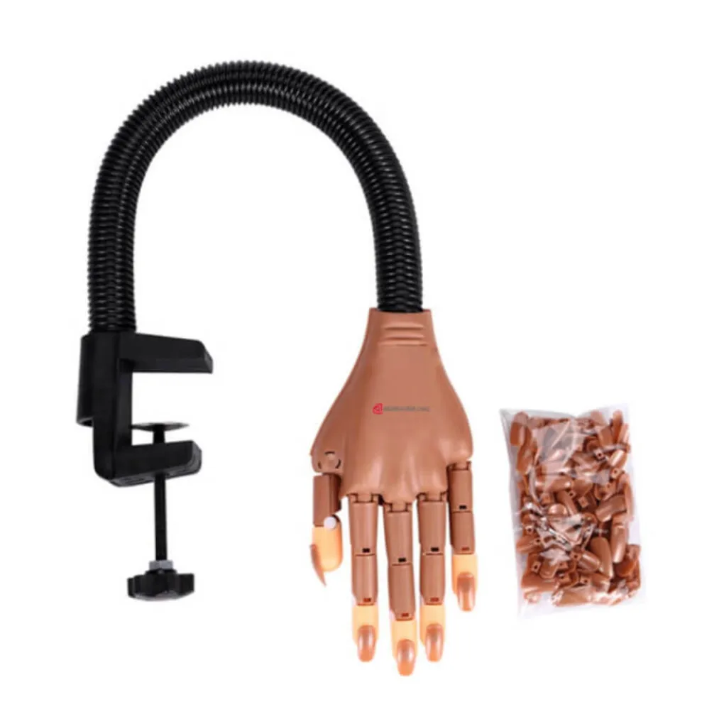 Hoogwaardige flexibele oefenhand met 100 kunstnagels voor professionele manicure training. Deze oefenhand helpt je bij het trainen van manicure technieken en is ideaal voor acryl-, gel- en wrap oefeningen en voor het ontwerpen van nail art. De oefenhand is gemaakt van stevig, flexibel ABS en heeft de grootte van een menselijke hand. De arm en vingers zijn verstelbaar en gemakkelijk te buigen. De kunstnagels kun je eenvoudig in de vingers steken en zijn afneembaar. Klem de oefenhand op de tafel en je kunt beginnen! Specificaties: Materiaal: ABS Plastic, Afmeting hand: 21cm. x 10cm. Afmeting klem: 16.5cm. x 30cm. Gewicht: 870g.