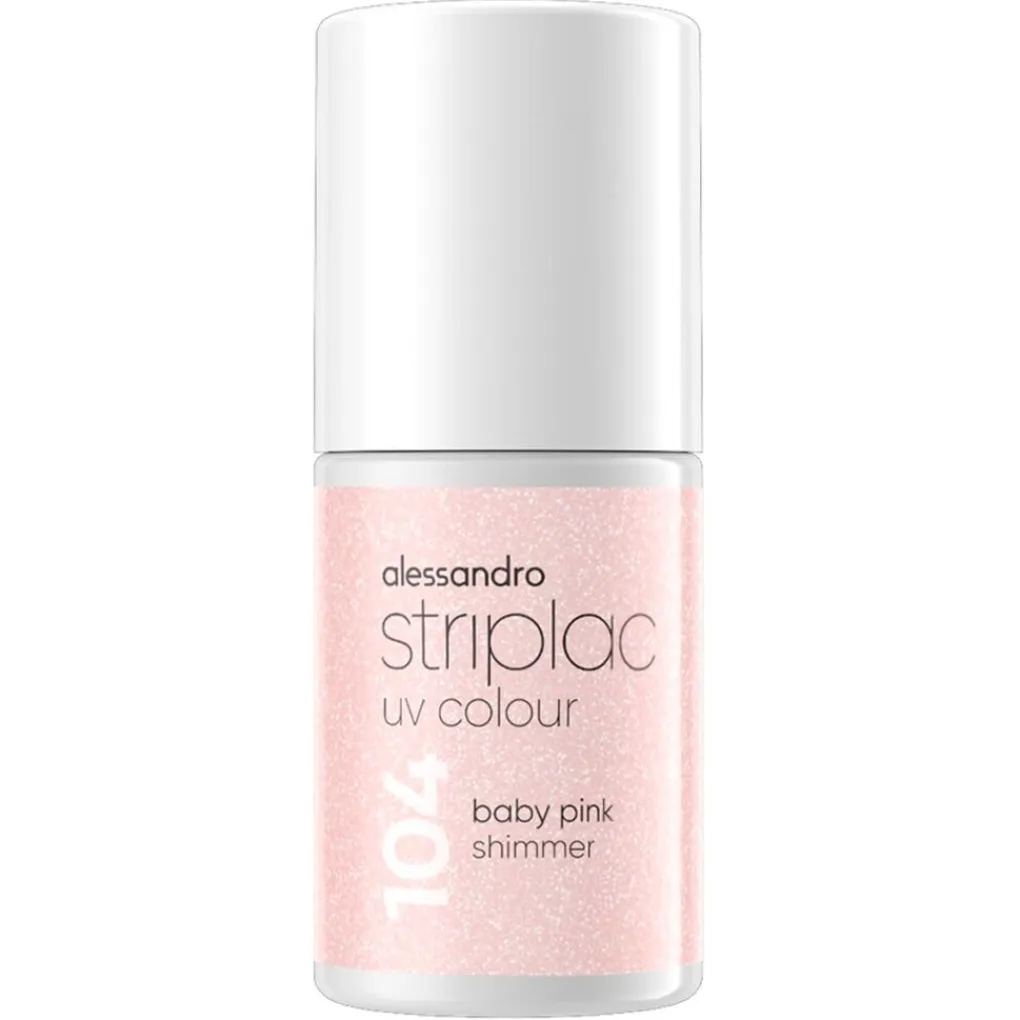 Alessandro Striplac UV Colour 104 Baby Pink Nagellak is een frisse, lichtroze tint met een zachte en jeugdige uitstraling. Deze kleur geeft je nagels een verzorgde, natuurlijke look en is ideaal voor dagelijks gebruik.