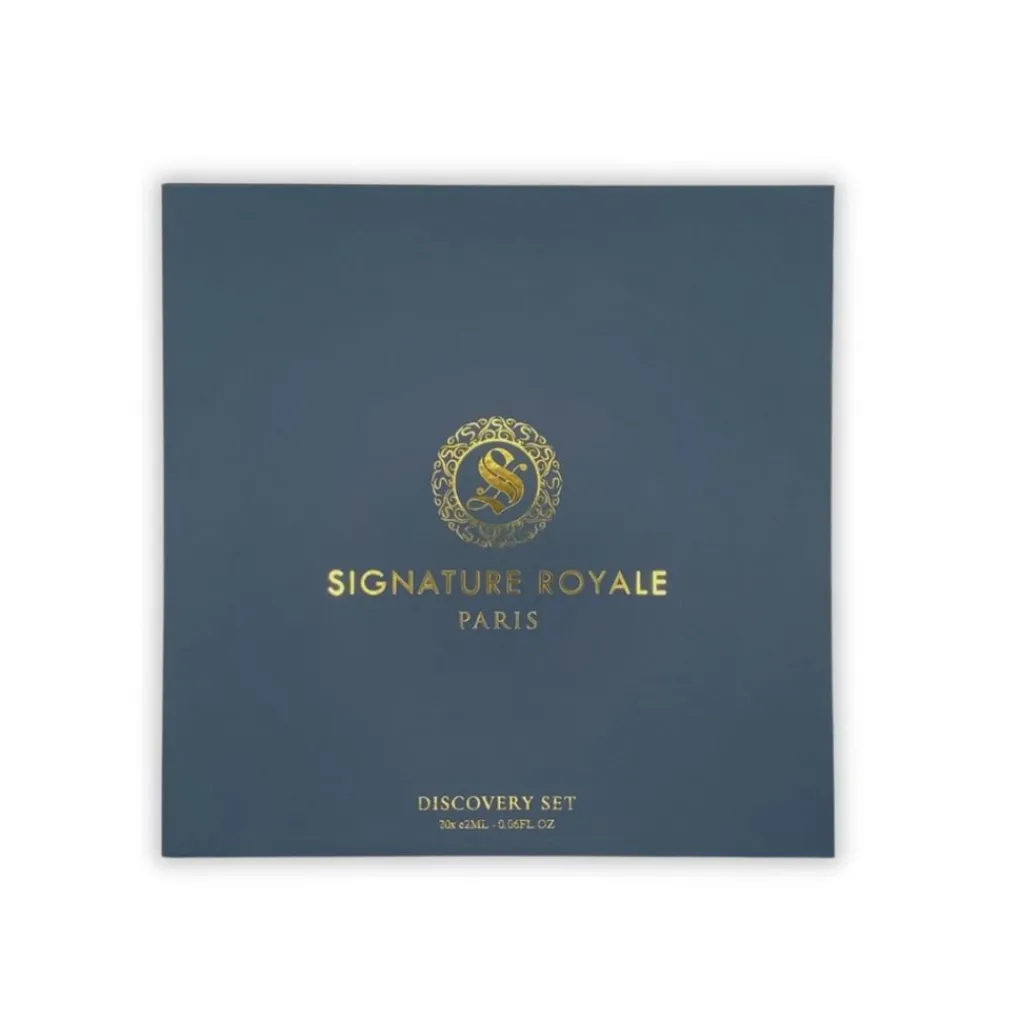 Ontdek de royale allure van Signature Royale met de nieuwe Discovery Set. Deze exclusieve collectie omvat de 20 creaties, elk gevat in een premium glazen verstuiver en gehuld in een luxueuze verpakking.