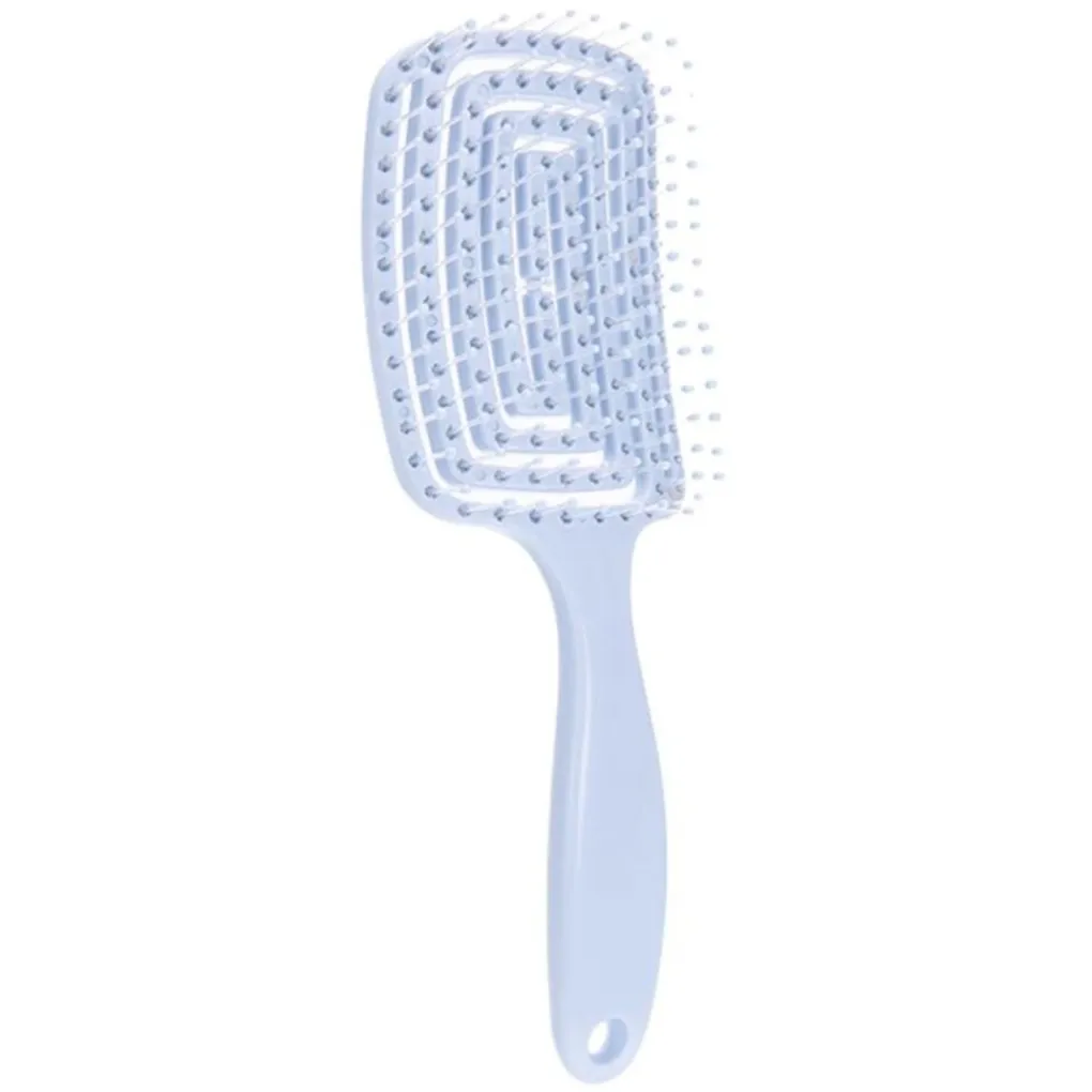 Ontdek het geheim achter moeiteloos stylen en glanzend haar met de ontklittende Hollow-haarborstel in blauw. Deze innovatieve borstel is de ultieme oplossing voor dagelijkse haarproblemen, van vervelende klitten tot tijdrovend stylen. Het unieke holle ontwerp zorgt voor een optimale luchtdoorstroming voor sneller en efficiënter föhnen, terwijl het haar minder snel beschadigd raakt en zijn natuurlijke glans behoudt.Het strakke ontwerp combineert functionaliteit met elegantie, waardoor het een onmisbaar accessoire is in elke schoonheidsroutine. De borstel is voorzien van zachte, flexibele borstelharen die de haarlokken gemakkelijk scheiden zonder te trekken of te breken, wat zorgt voor een soepele en pijnloze ontklittingservaring. Of je nu dik, krullend, dun of steil haar hebt, deze borstel past zich probleemloos aan alle haartypes en texturen aan.Het ergonomisch ontworpen handvat zorgt voor een comfortabele en veilige grip, waardoor je elke beweging onder controle hebt terwijl je je haar in model brengt en gladstrijkt. Door het lichte gewicht is hij ideaal voor gebruik thuis en onderweg, zodat je altijd en overal de perfecte look kunt creëren.