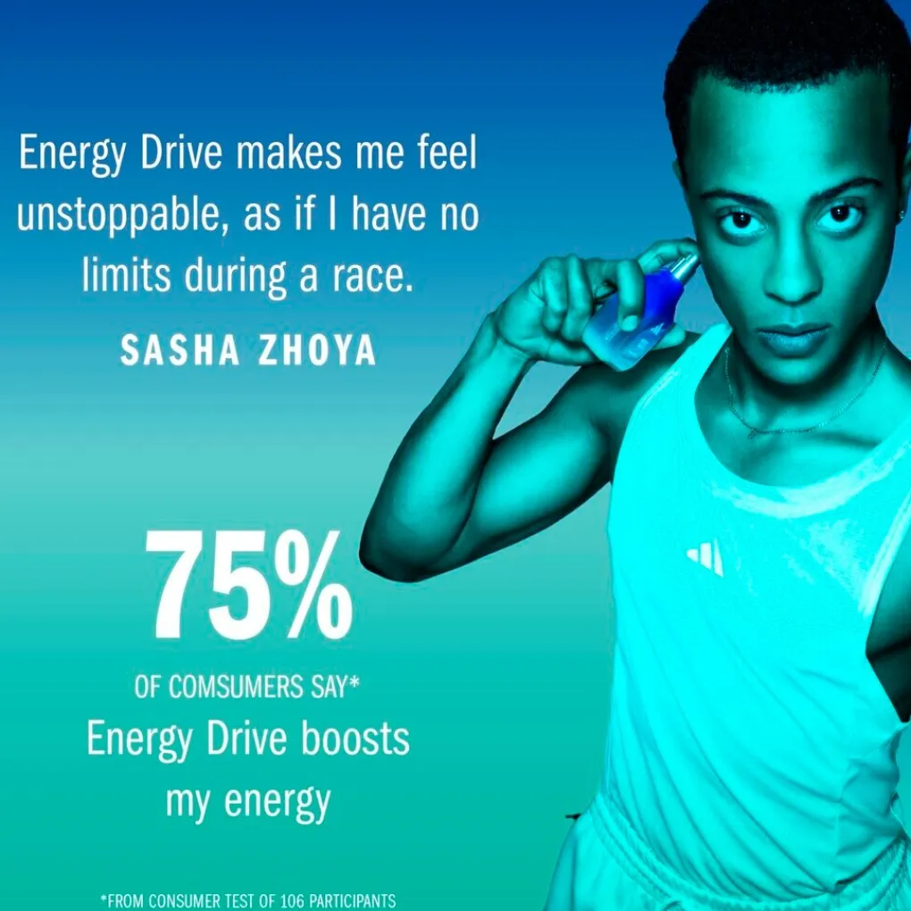 Voel de vibe en de bruisende energie van Adidas Vibes Energy Drive Eau de Parfum. Hij is krachtig en helder, als een uitbarsting van energie die niet te stoppen valt, wanneer niemand je tegen kan houden.