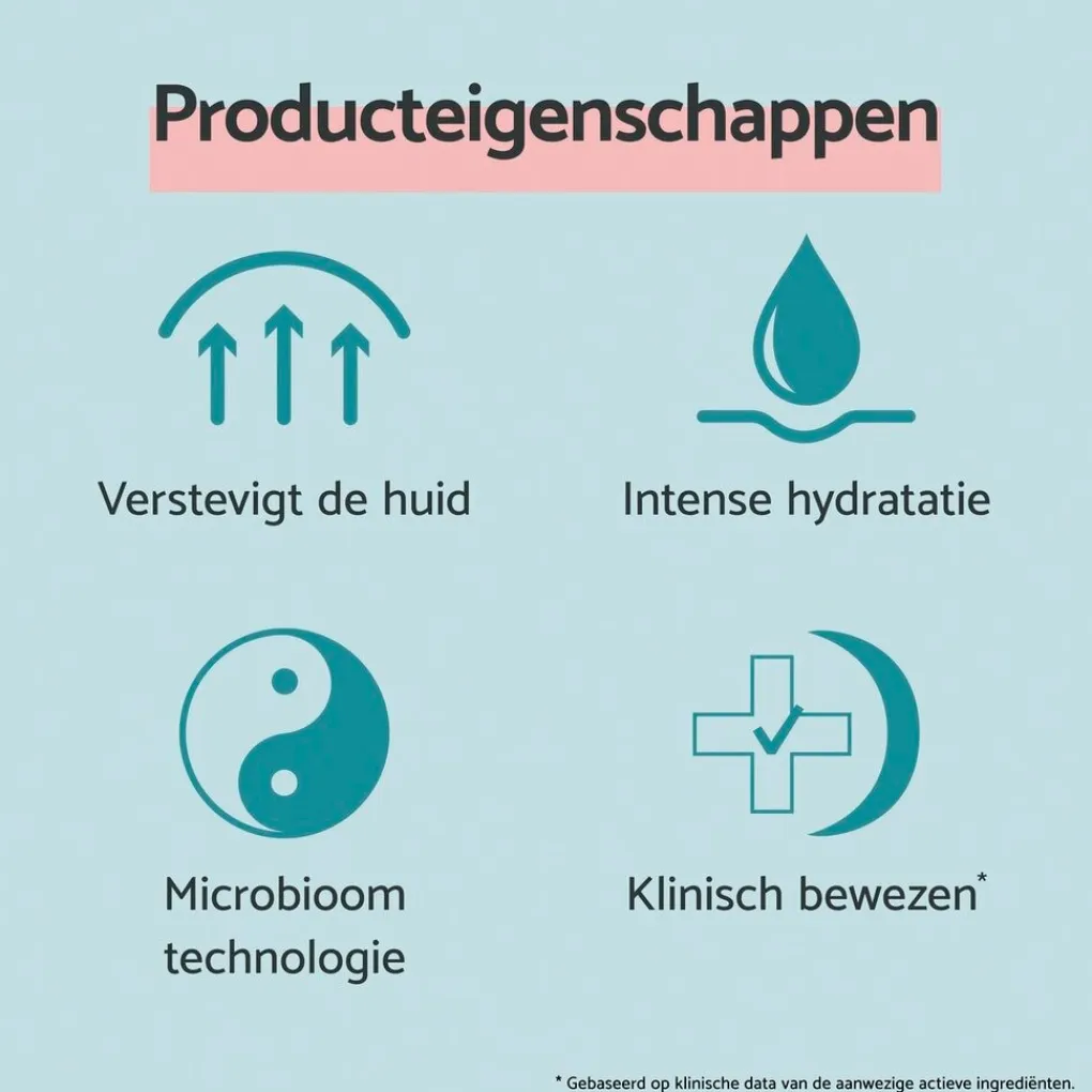 De bi-collageen combinatie die wordt gebruikt in het serum heeft een dubbele werking op je opperhuid. Enerzijds wordt er een film gevormd over je huid waardoor de elasticiteit van je huid gestimuleerd wordt. Zo worden rimpels en fijne lijntjes minder zichtbaar. Anderzijds wordt je huidbarrière verstevigd en gevoed.